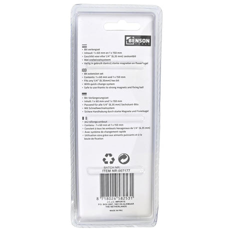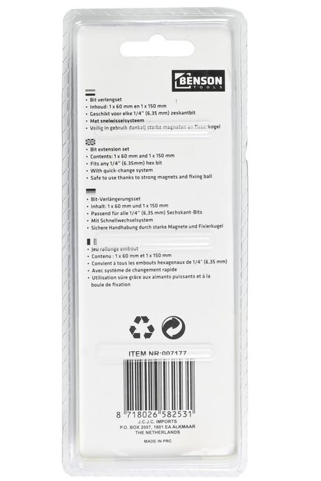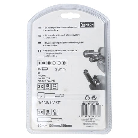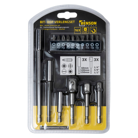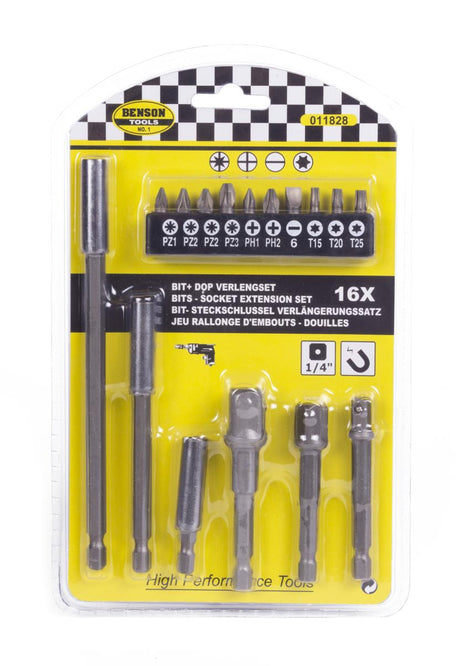 Bit verloop naar dop 1/4-3/8-1/2" x 70 mm
