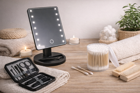 Binnen deze categorie vind je een breed aanbod aan verzorgingsproducten, zoals nagelknippers, pincetten, haarelastieken, borstels, kammen en make-up spiegels. Ook zijn er complete manicure- en pedicuresets beschikbaar, evenals organizers voor make-up, wattenschijfjes en wattenstaafjes. Deze artikelen zijn ideaal voor thuisgebruik en helpen je om je dagelijkse verzorgingsroutine efficiënt en stijlvol in te richten.