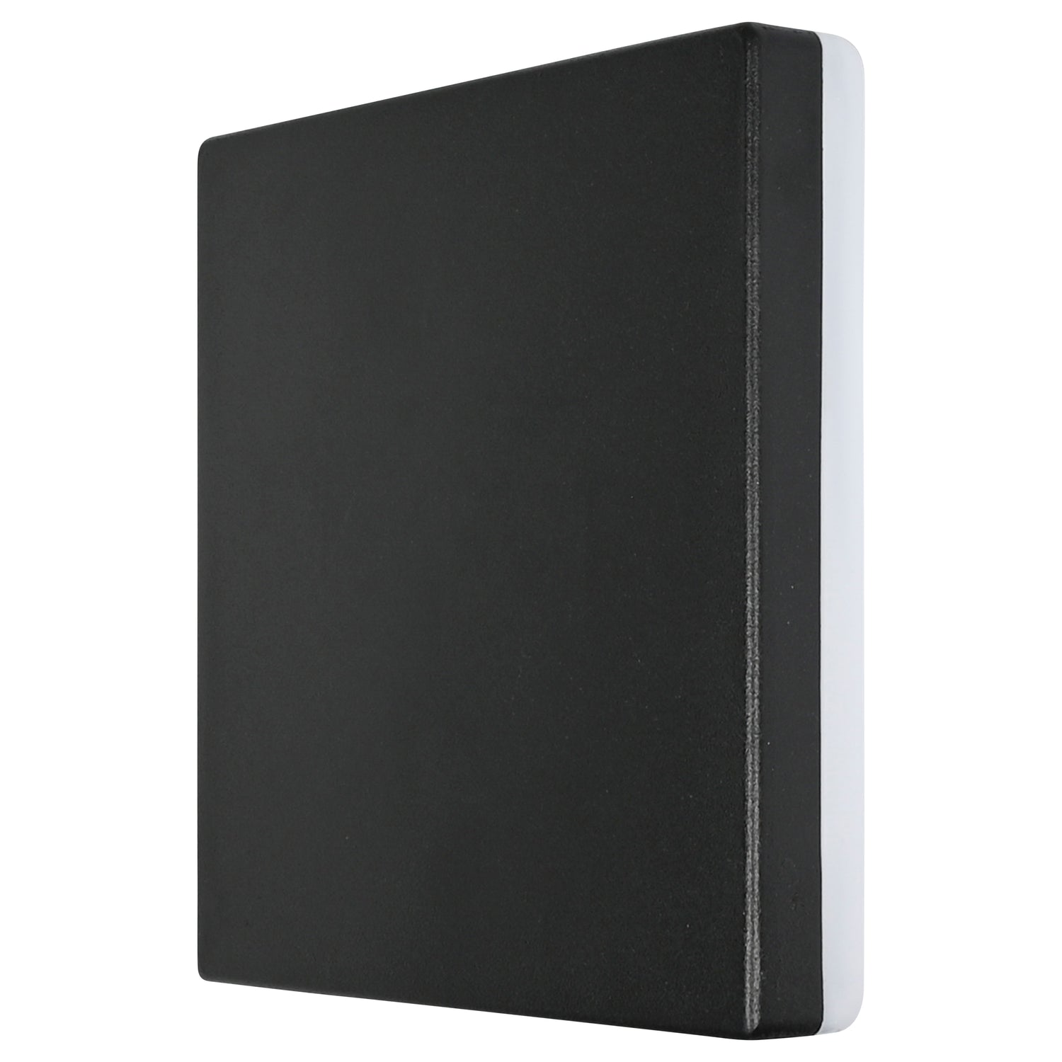 Diese quadratische Wandlampe ist schwarz und leicht auf dem gesamten Rücken vorne.