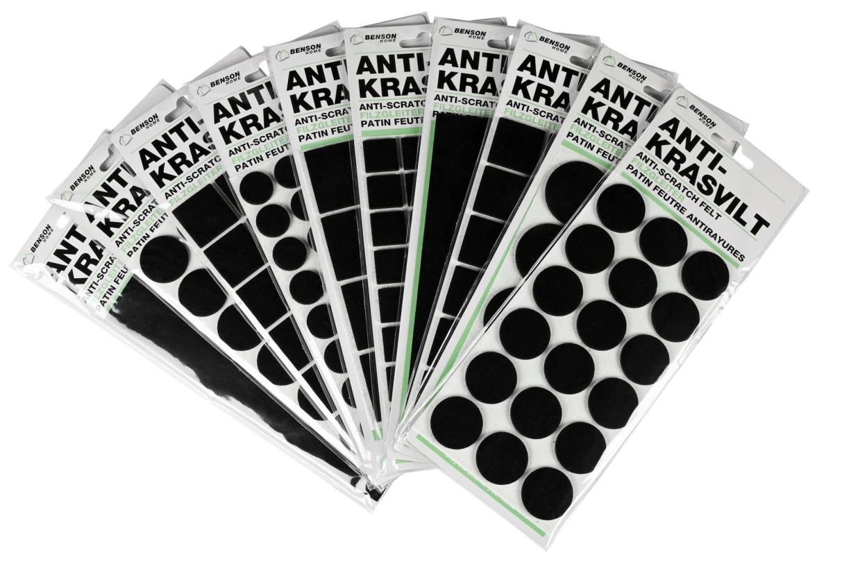 De zelfklevende antikras vilt beschermt gevoelige ondergronden zoals bijvoorbeeld: hout, glas, parket, laminaat of tegels. Tevens helpt het tegen krassporen en vergemakkelijkt het verschuiven van voorwerpen.