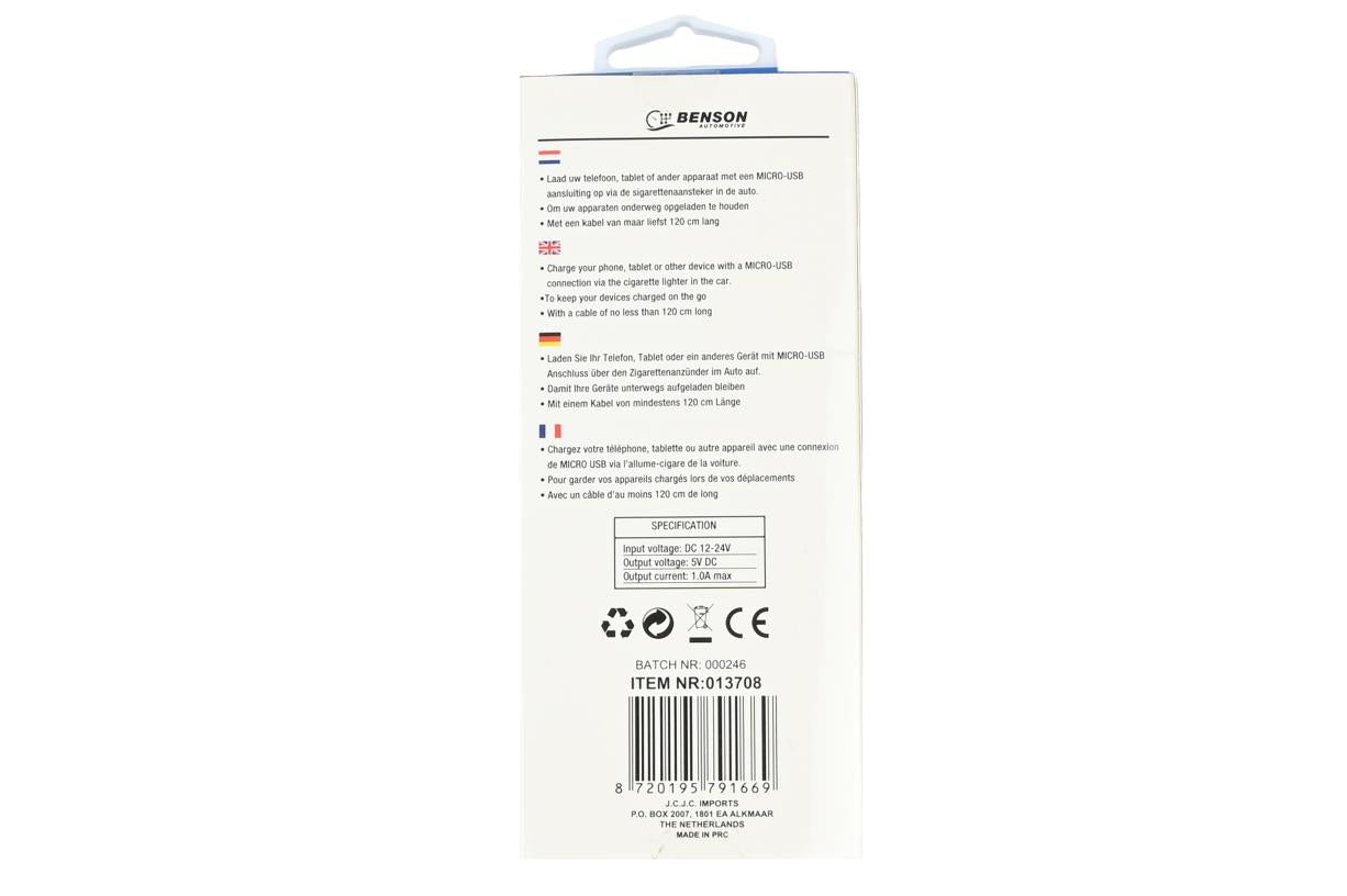 Autolader micro USB kabel 1.2 mtr 12-24V - 1 is nabesteld en wordt verzonden zodra het weer op voorraad is.