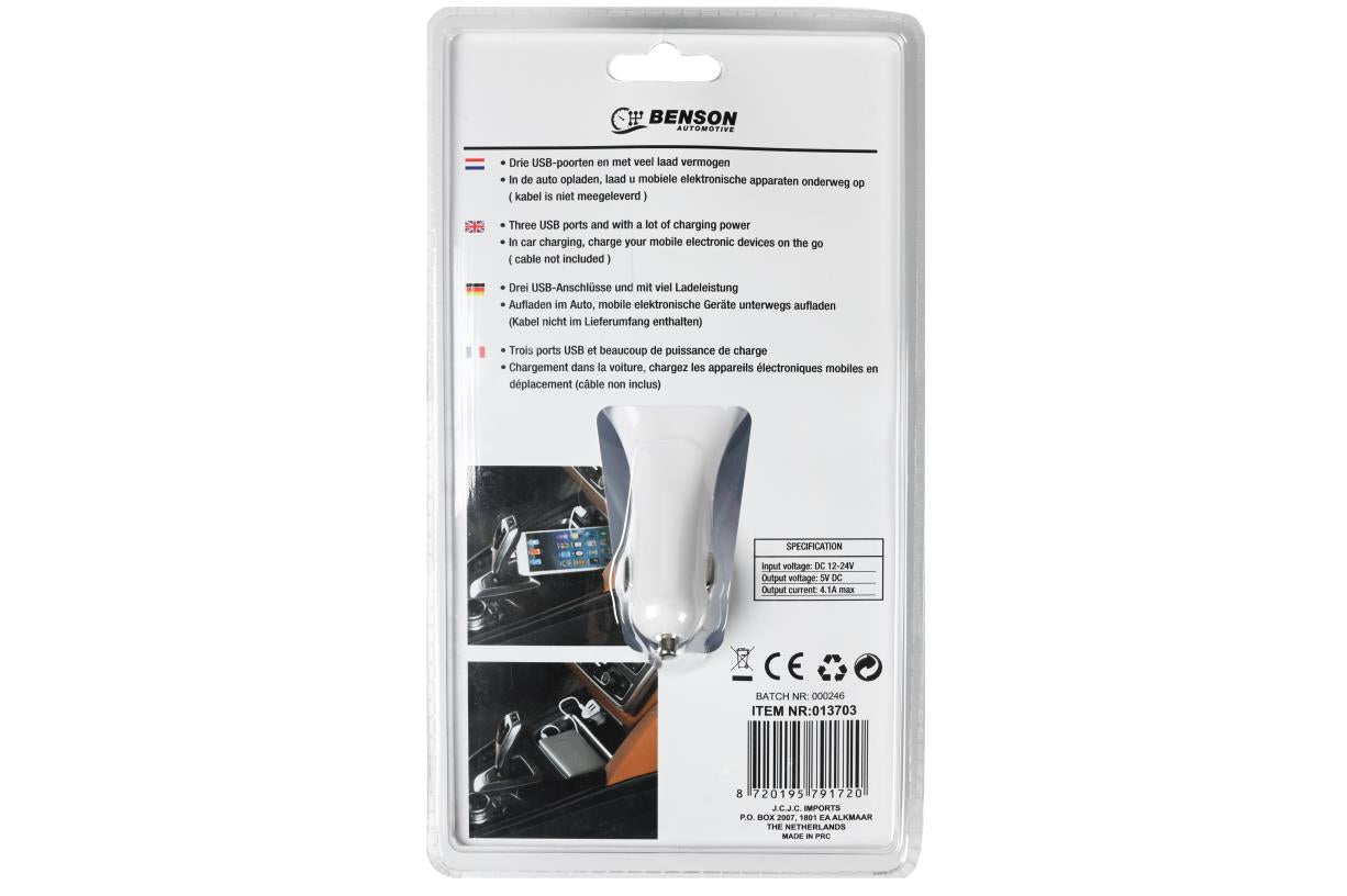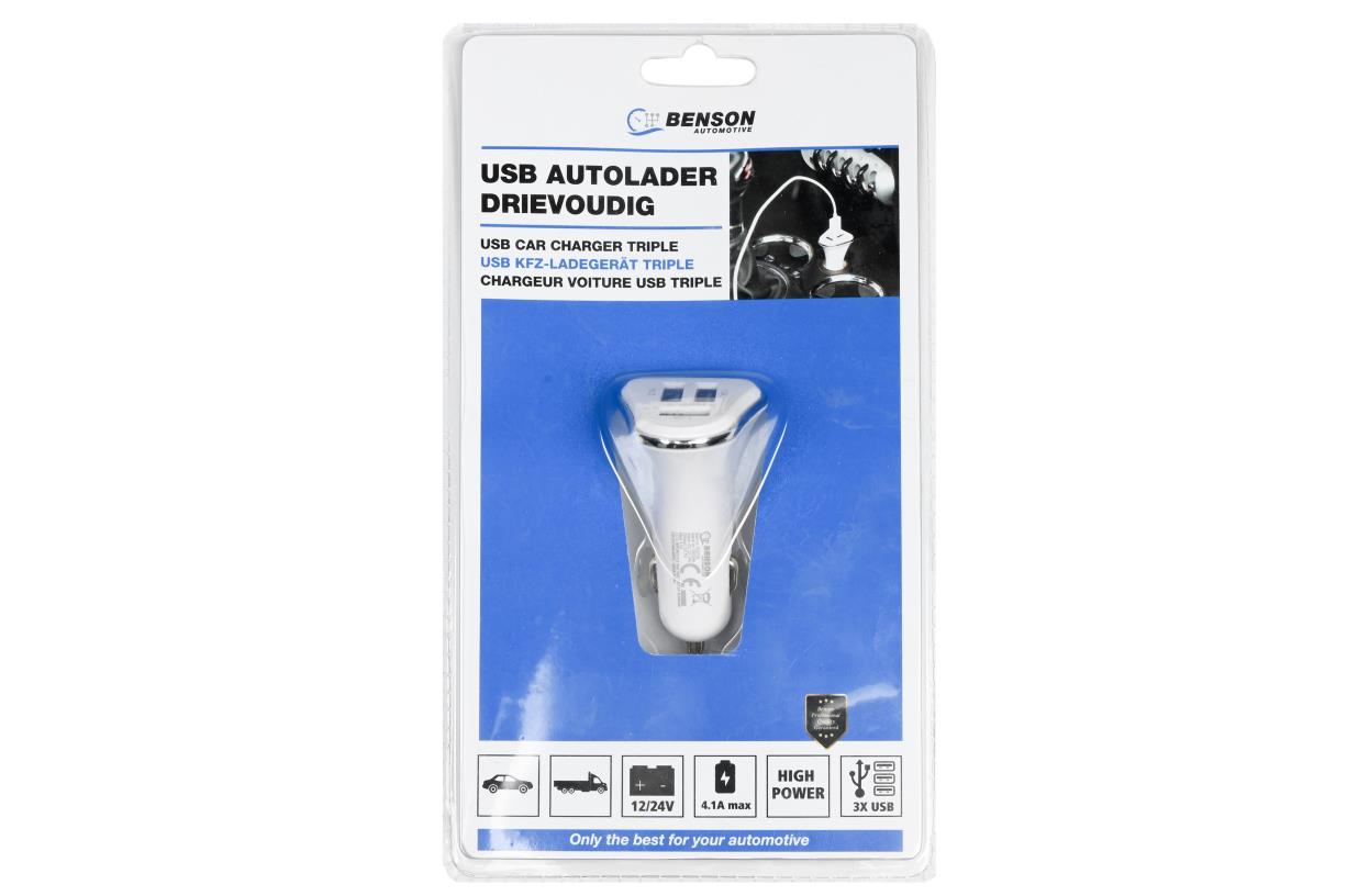 Autolader USB 4.1A 3 poorten 12-24V - 1 is nabesteld en wordt verzonden zodra het weer op voorraad is.