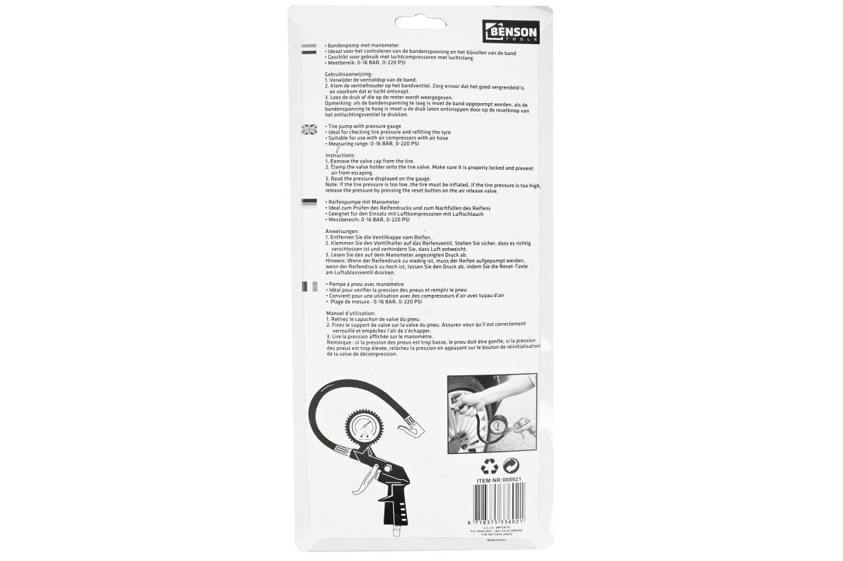 - Meetbereik: 0-16 BAR, 0-220 PSI