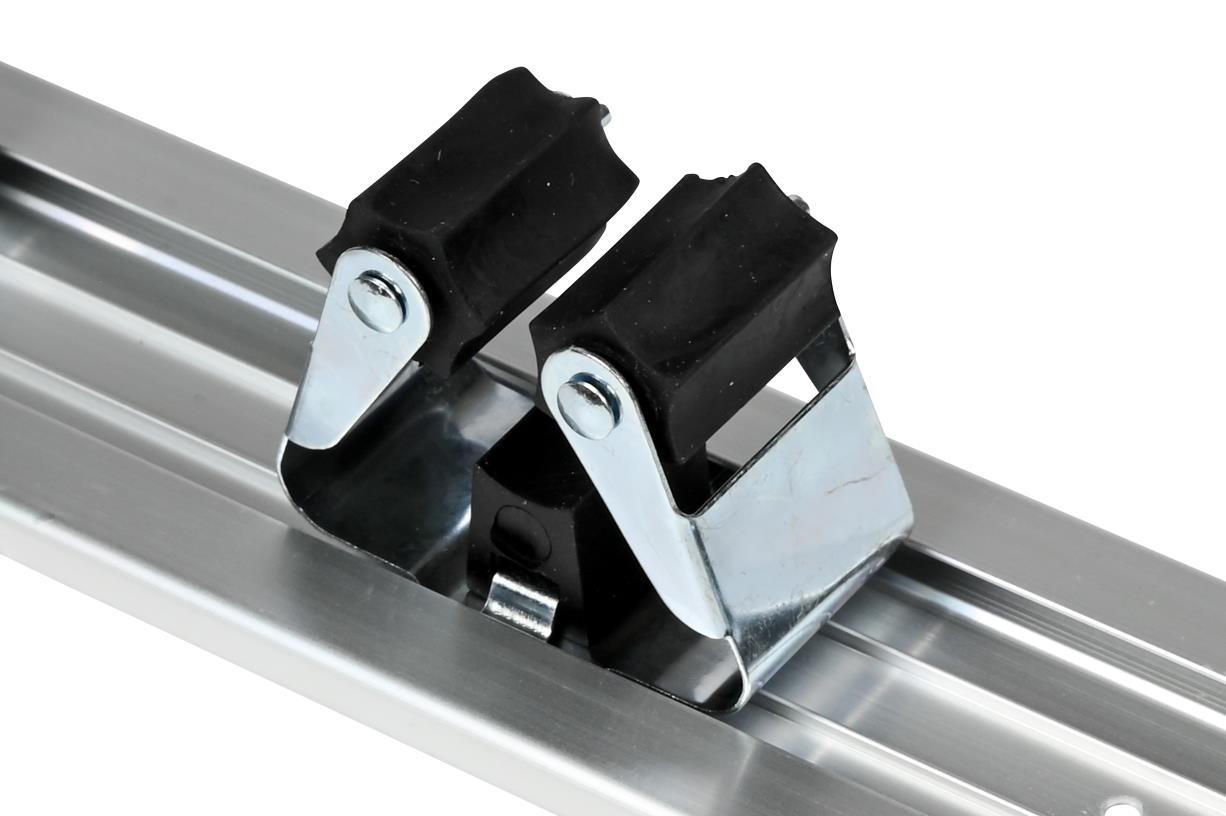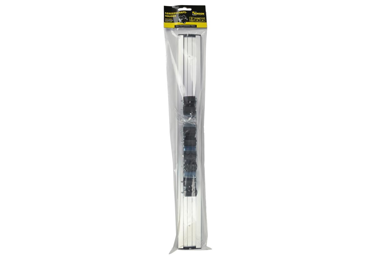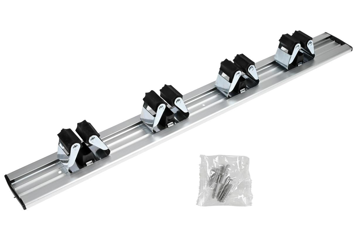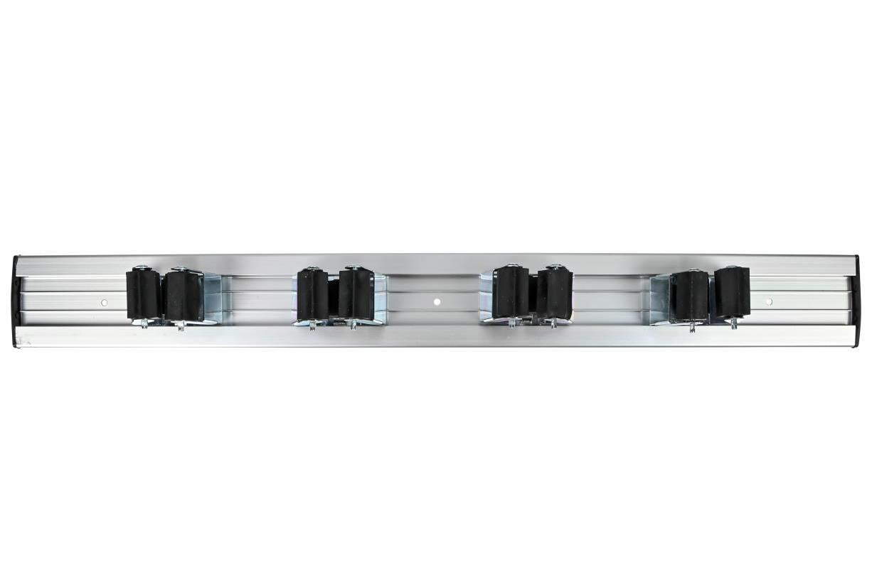 Rail met 4 verschuifbare houders voor bezems, scheppen, hamers, tangen, enz.