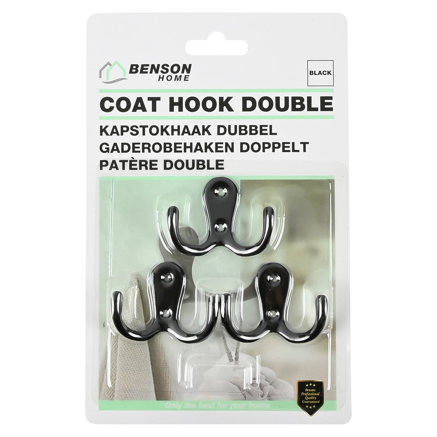 Kapstokhaak dubbel metaal zwart 3 dlg