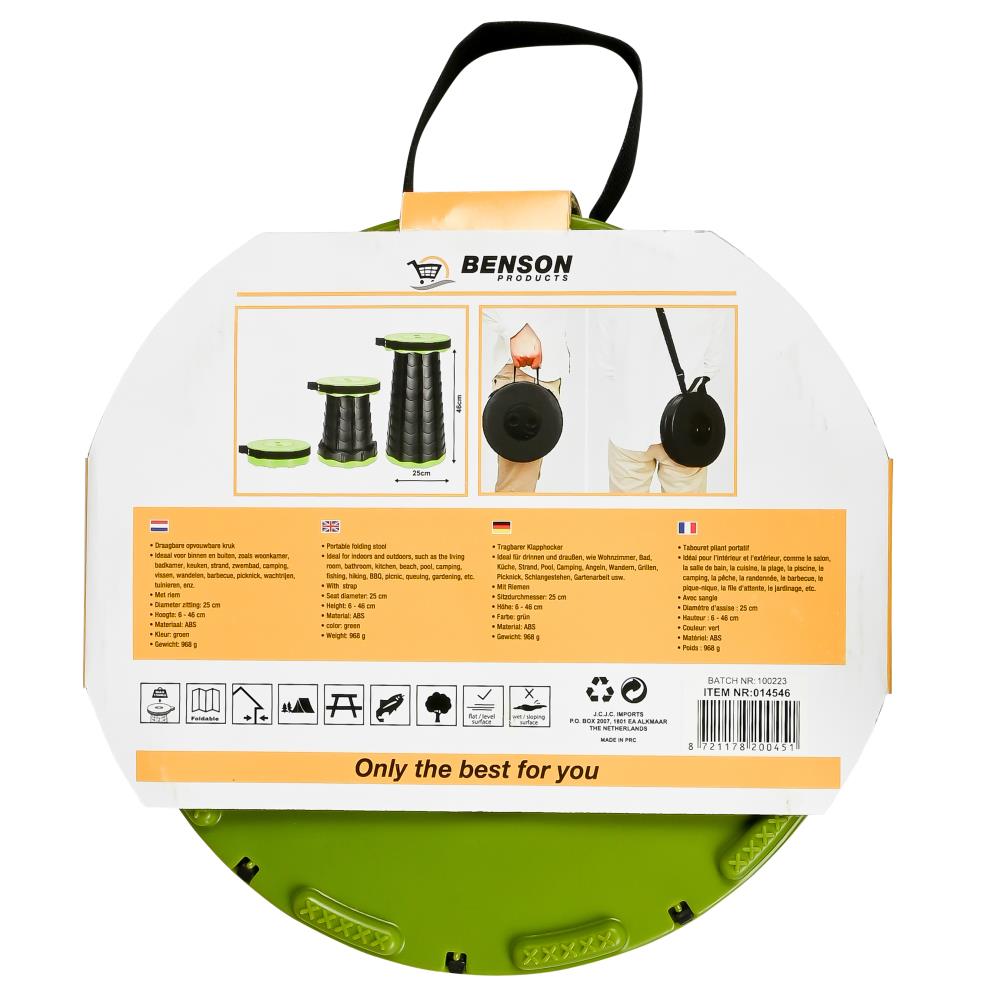 Kruk opvouwbaar draagbaar ABS groen - 1 is nabesteld en wordt verzonden zodra het weer op voorraad is.