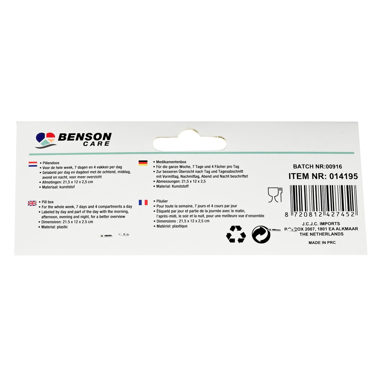 Pillendoos 7 dagen 4 vakken - 1 is nabesteld en wordt verzonden zodra het weer op voorraad is.