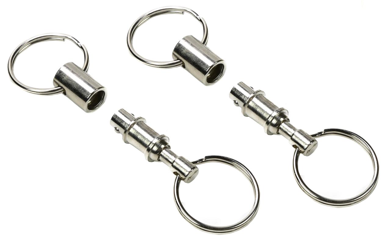 - Door middel van de drukknop op te splitsen in 2 sleutelhangers