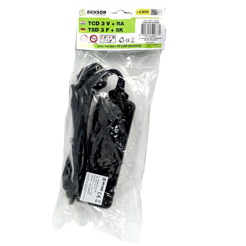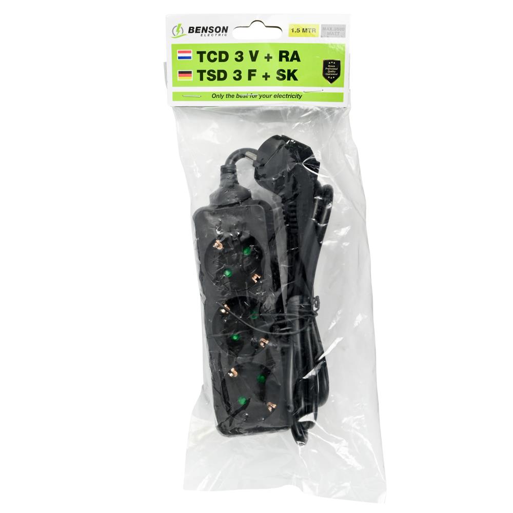 Stekkerdoos 3-voudig + RA + 1.5 mtr zwart