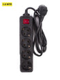Stekkerdoos 4-voudig + RA + schakelaar 1.5 mtr zwart